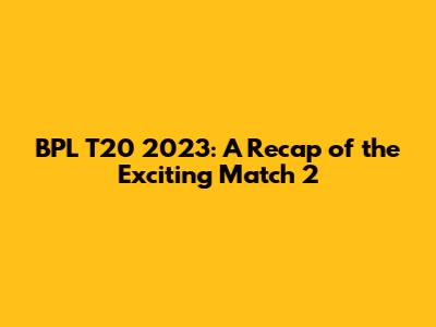 Hey sports fanatics! Let's dive into the electrifying BPL T20 2023 tournament, specifically the thrilling highlights from Match 2. This year's Bangladesh Premier League (BPL) promises to be an absolute rollercoaster of cricketing action, and Match 2 certainly set the tone. We're talking nail-biting finishes, stunning catches, and power-packed batting performances. If you missed the live action, don't worry – we've got you covered with all the juicy details, key moments, and standout performances that made Match 2 a must-watch. Get ready to relive the excitement, analyze the strategies, and celebrate the heroes of the day. This year, the tournament is bigger, bolder, and better than ever! The teams have brought their A-game, and the competition is fierce. From the opening ball to the final wicket, every moment is packed with suspense and skill. This BPL T20 2023 season is shaping up to be one for the history books, so let's jump right into the heart of the action and break down the highlights of Match 2, giving you all the details you need to be in the know. We'll examine the game's key turning points, individual player brilliance, and team strategies that defined the match. Whether you're a seasoned cricket guru or a casual fan, this recap will bring you up to speed with everything you need to know about this unforgettable encounter. Let's explore every facet of the game that made match 2 a thrilling encounter. The energy in the stadium was palpable, and the players rose to the occasion, delivering a spectacle that had everyone on the edge of their seats. The passion and dedication of the players were evident, making it an incredible display of cricketing prowess. Each team came into this match with something to prove, and the result was an exciting and memorable game. It was a perfect blend of aggressive batting, strategic bowling, and agile fielding, which kept the fans utterly enthralled. The team spirit and dedication to achieving the win was clearly displayed by the players. You don't want to miss the highlights of the match. The BPL T20 2023 promises more excitement in upcoming matches.