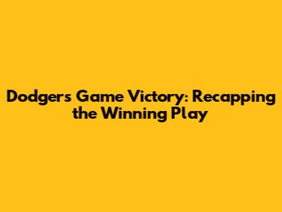 Dodgers Game Victory: Recapping The Winning Play