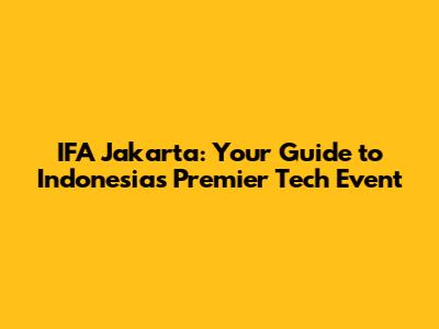 IFA Jakarta: Your Guide To Indonesia's Premier Tech Event