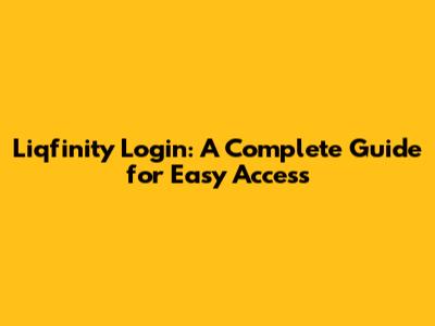 Liqfinity Login: Your Comprehensive Guide