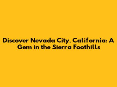 Nevada City, CA: Your Guide