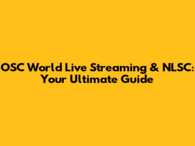 OSC World Live Streaming & NLSC: Your Ultimate Guide