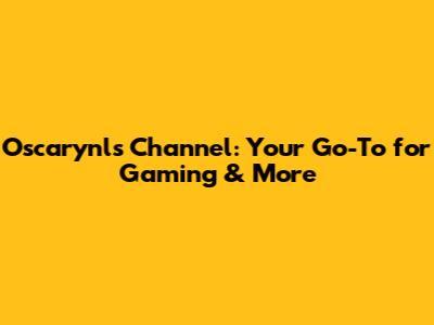 Oscarynl's Channel: Your Go-To For Gaming & More