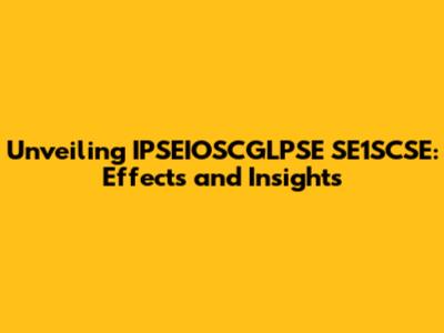 Unveiling IPSEIOSCGLPSE SE1SCSE: Effects And Insights