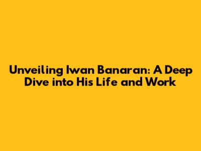 Unveiling Iwan Banaran: A Deep Dive Into His Life And Work
