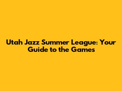 Utah Jazz Summer League Schedule Details