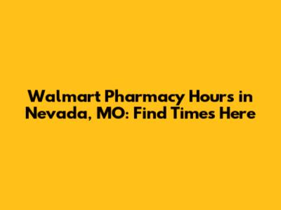 The Walmart website is your best friend. Just go to Walmart.com and use the store finder. Type in "Nevada, MO," and it will show you the Walmart store in that area. Once you select the store, you will see all sorts of information, including the pharmacy hours. Usually, the pharmacy hours are listed separately from the store hours because they might be different. This is usually the most accurate way to find the times.